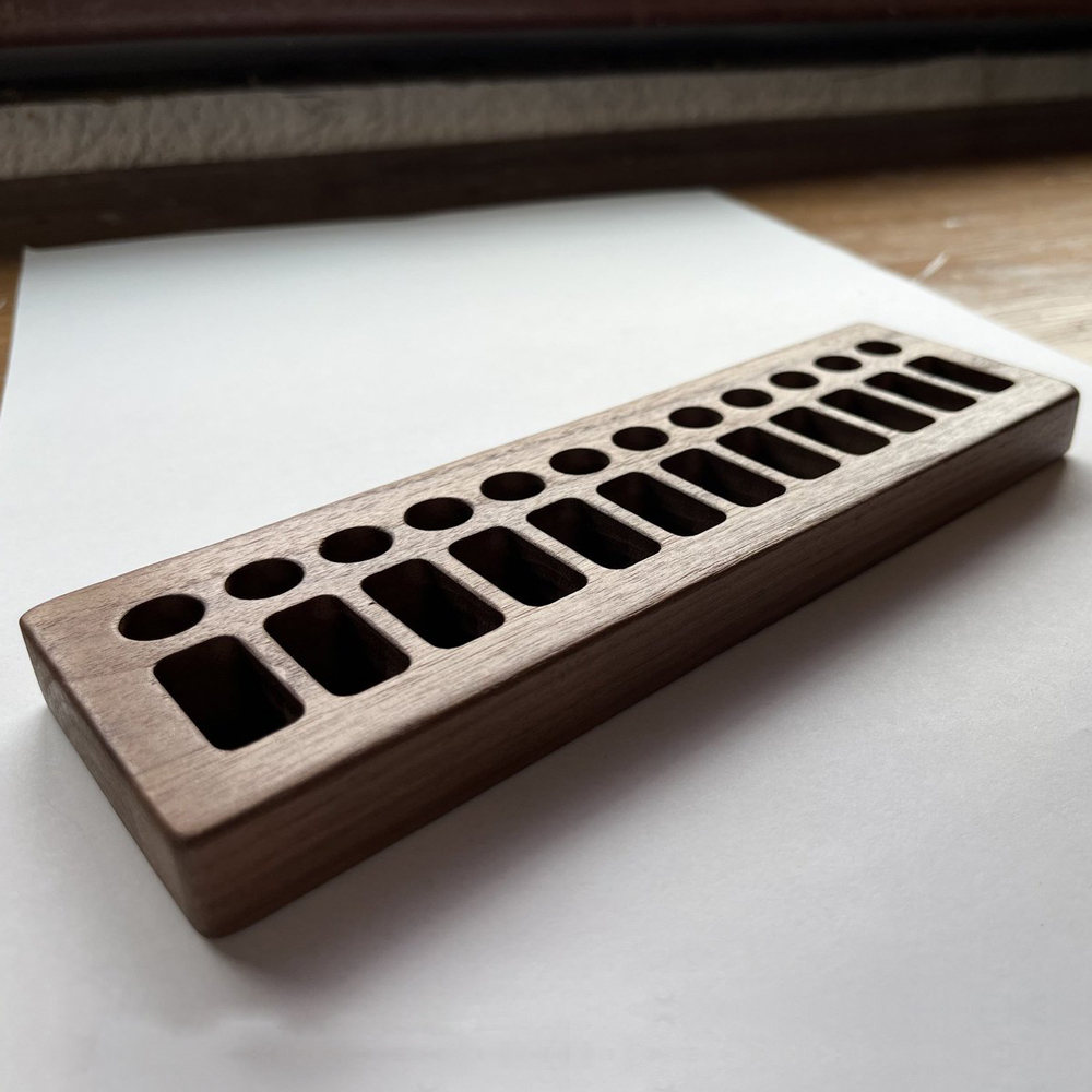 Made from beautiful Walnut. This crayon holders fits Filana as well as Stockmar 12 sticks & 12 blocks. (crayons not included)