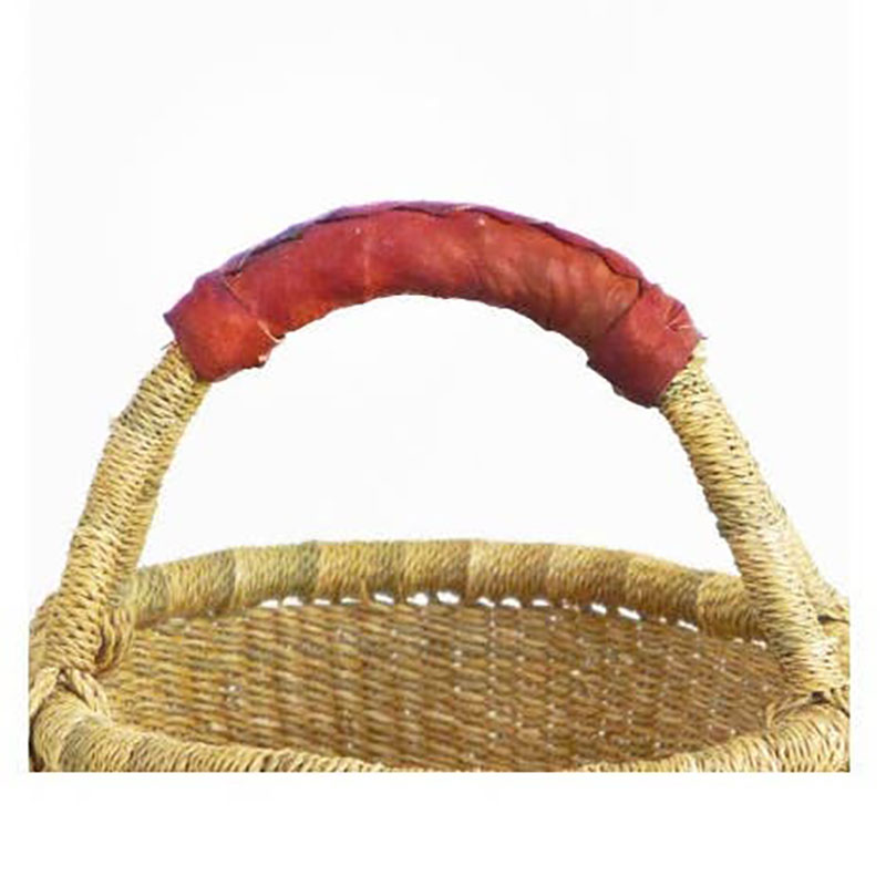 This Natural Bolga market basket are made by Artisans in the Bolgatanga region of Ghana weave these beautiful and durable baskets from thick, tough elephant grass. Bolga basket is a very popular size for children, shoppers, busy mothers and picnic planners worldwide. Bolga baskets stand up to use, practical, sustainable, remain functional, and beautiful for years. Handwoven in Ghana made from local elephant grass. Each basket is one of a kind, in a unique pattern, and the leather wrapped handle adds to the durability. Incredibly sturdy and versatile basket is the perfect home accessory, plant pot, toy basket, Easter egg basket, or market basket.