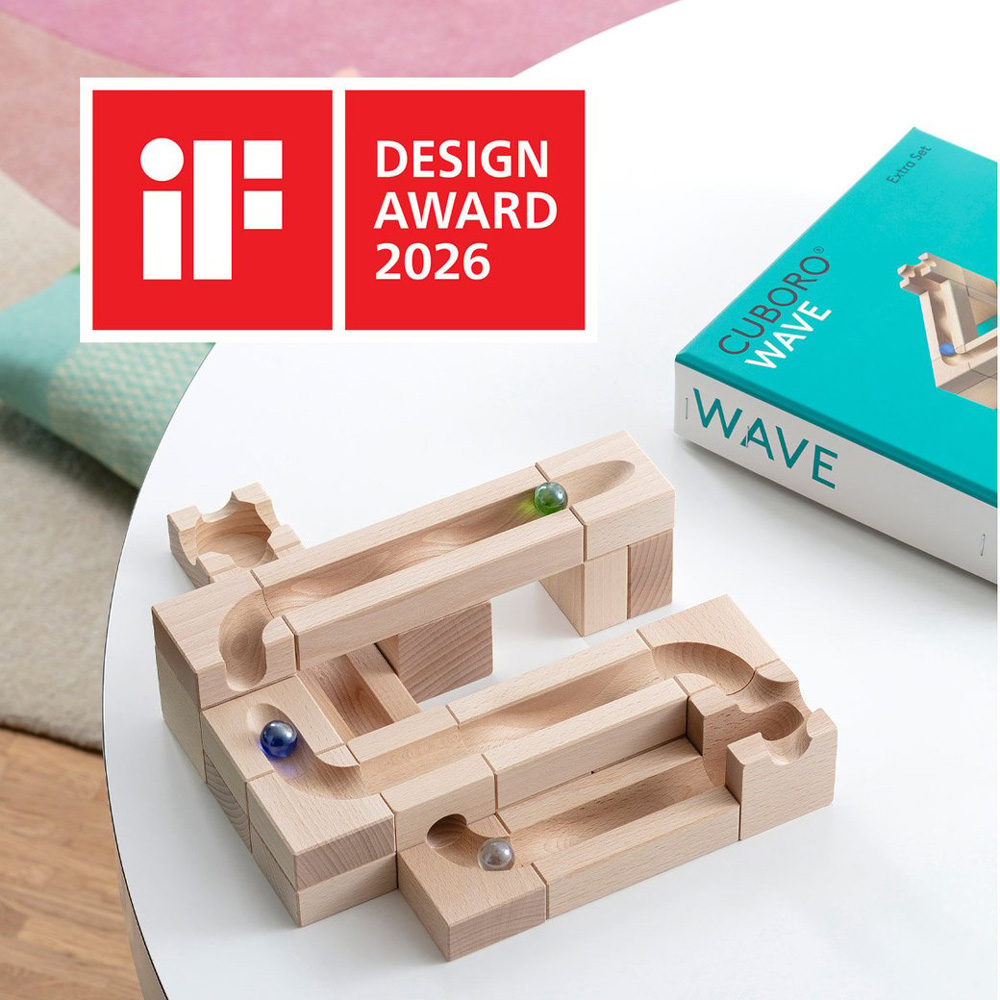 The latest addition to the Cuboro system, WAVE elements add a special flow to your marble run. The marble glides smoothly up and down the wavy grooves before rolling gently to the next level. Extra Sets expand the Starter Sets and offer additional fun. The WAVE Extra Set works great with other CUBORO sets – but also works independently as a compact introduction to the creative marble run system. 2026 recipient of the iF Design Award.