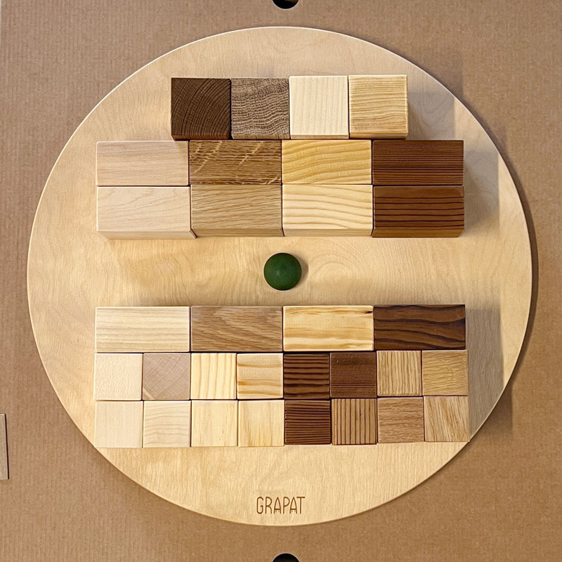A balance board with a collection of wooden pieces. Challenge yourself to find the perfect balance, make it spin and swing, or experiment with the concepts of physics—all with your own hands!