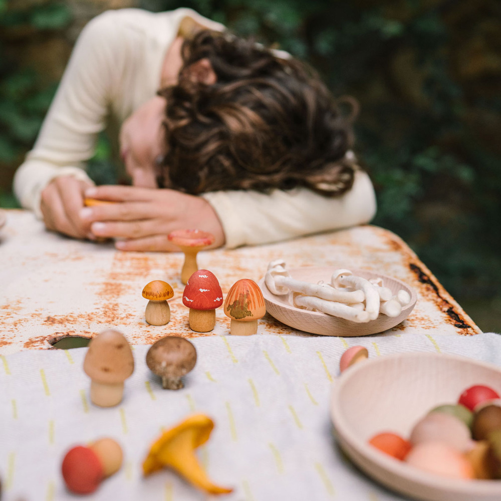 Little mushrooms, tiny wonders – have you ever imagined a secret forest floor full of tiny treasures? These hand-painted wooden mushrooms by Grapat invite children to explore, arrange, and create their own stories.