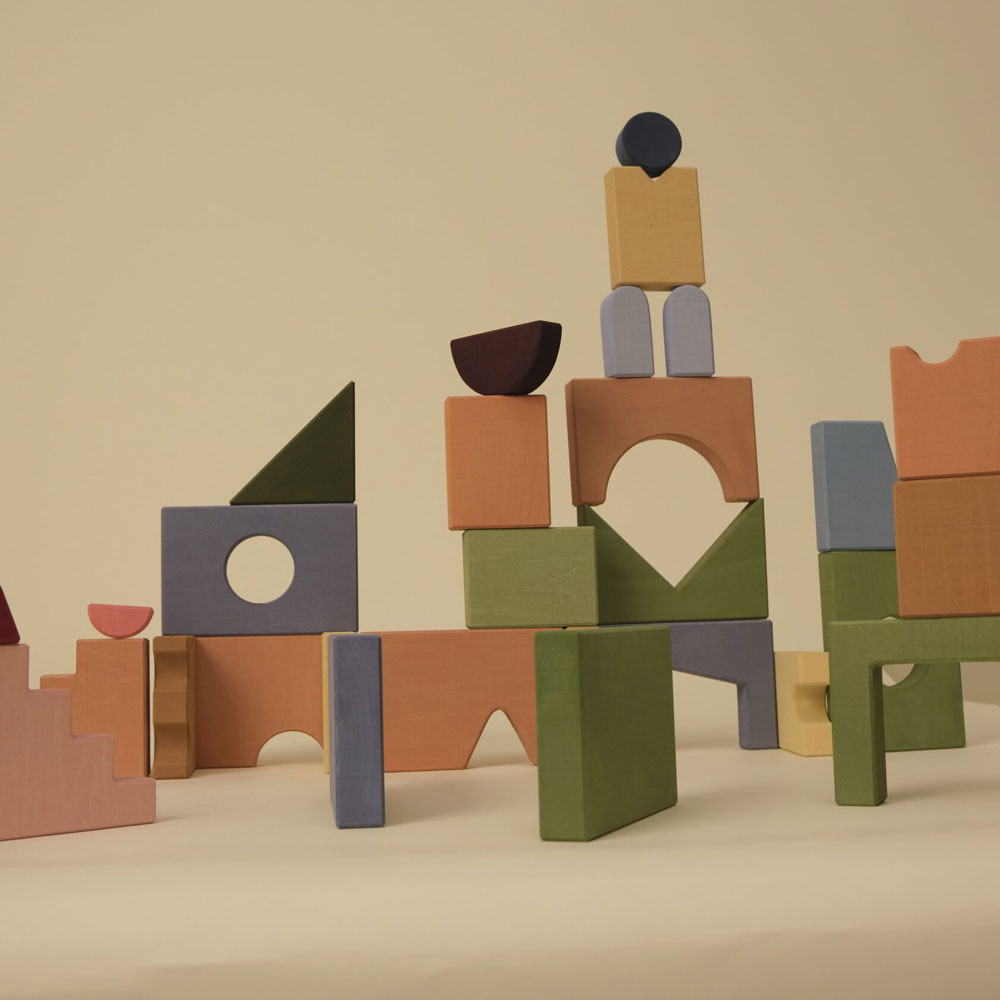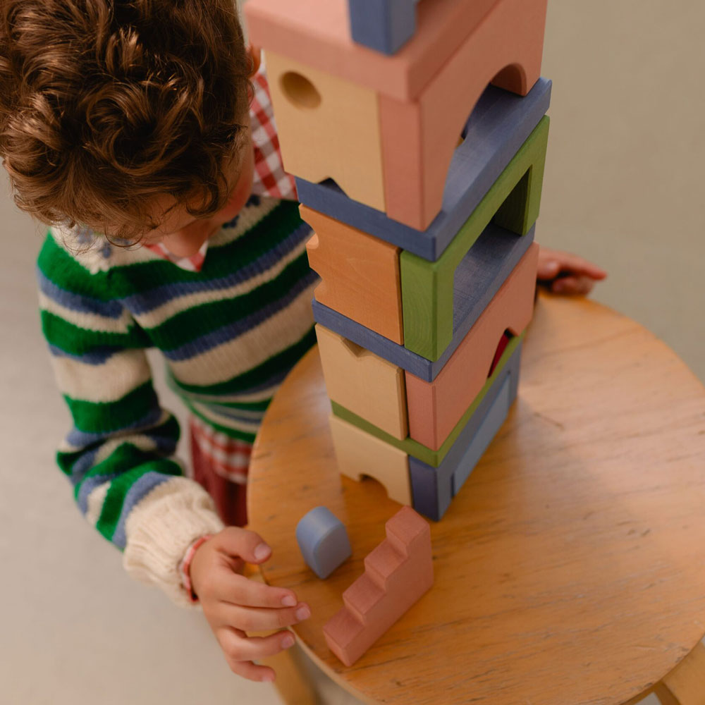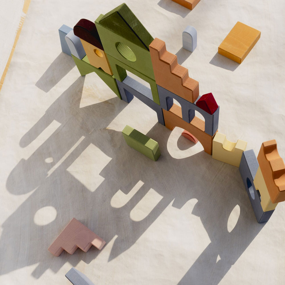 29 blocks for constructing. Neat shapes with cut-outs are well suited to architectural creations. A toy that develops design and spatial thinking. Build a skyscraper, a panel, an urban district with Blocks building blocks according to your plan!