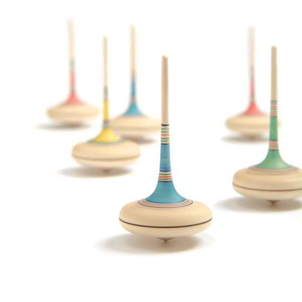 An elegant and delicate spinning top that comes in six different colors. Made of the finest Maple wood, with a record running time of 105 seconds!