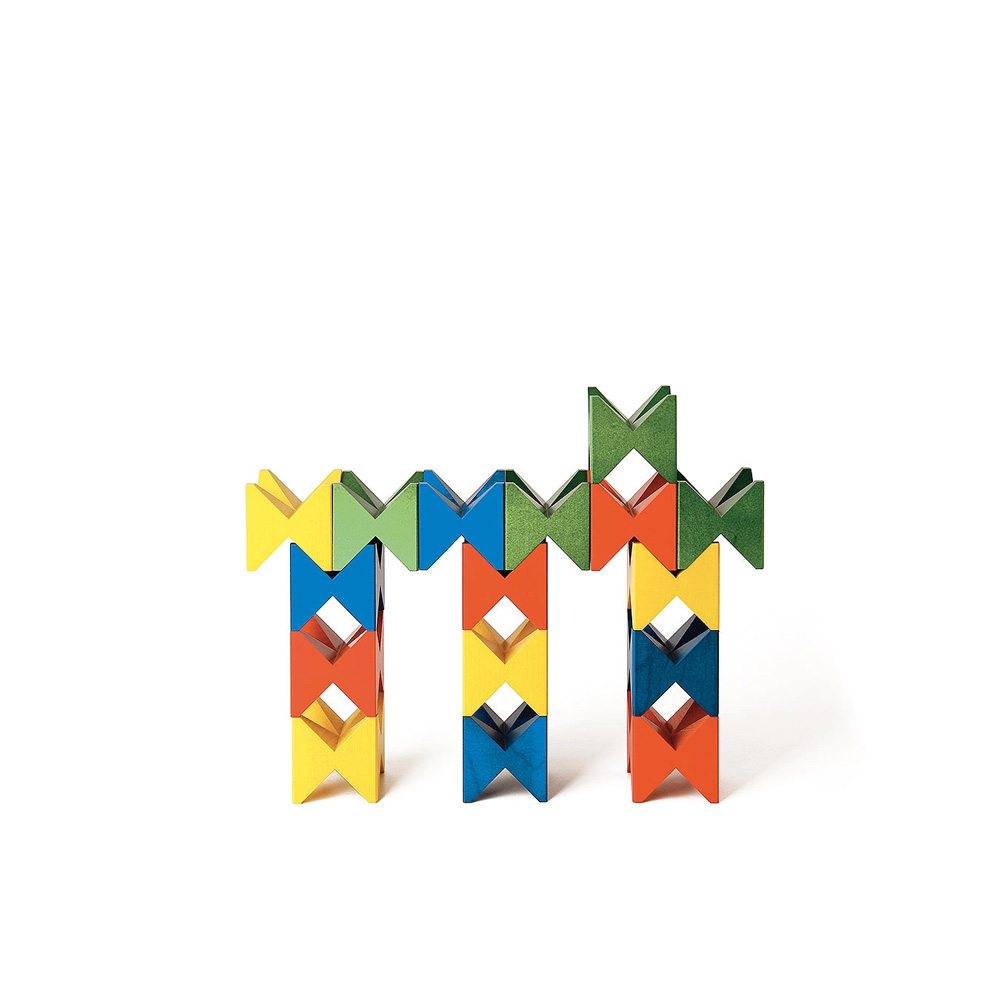 The Naef Spiel mini combines tradition, quality, and creativity in a handy format. Made from high-quality maple wood and available in either natural or bold colors, it invites children to discover, stack, and play freely – at home or on the go. Whether as a creative toy, travel companion, or design object, the mini delights young and old alike. Each cube of the Naef Spiel mini has an edge length of 2.5 x 2.5 x 2.5 cm (.98 in).