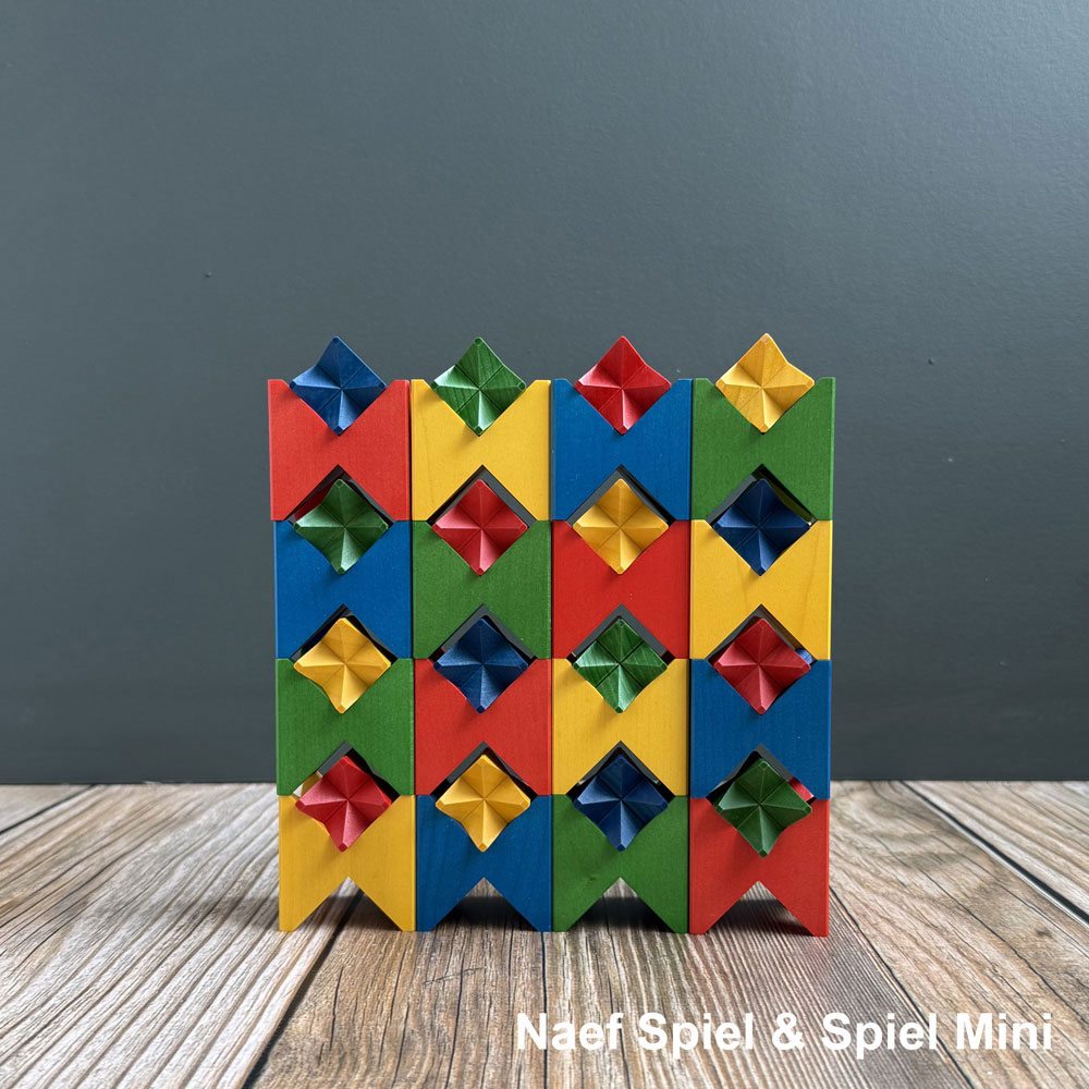 The Naef Spiel mini combines tradition, quality, and creativity in a handy format. Made from high-quality maple wood and available in either natural or bold colors, it invites children to discover, stack, and play freely – at home or on the go. Whether as a creative toy, travel companion, or design object, the mini delights young and old alike. Each cube of the Naef Spiel mini has an edge length of 2.5 x 2.5 x 2.5 cm (.98 in).