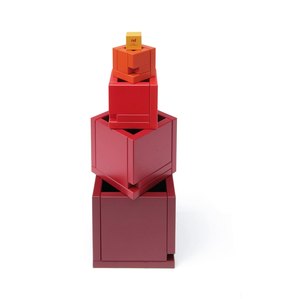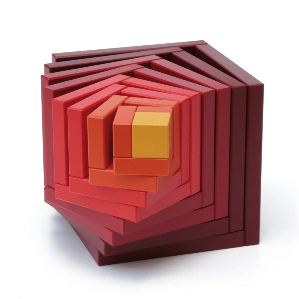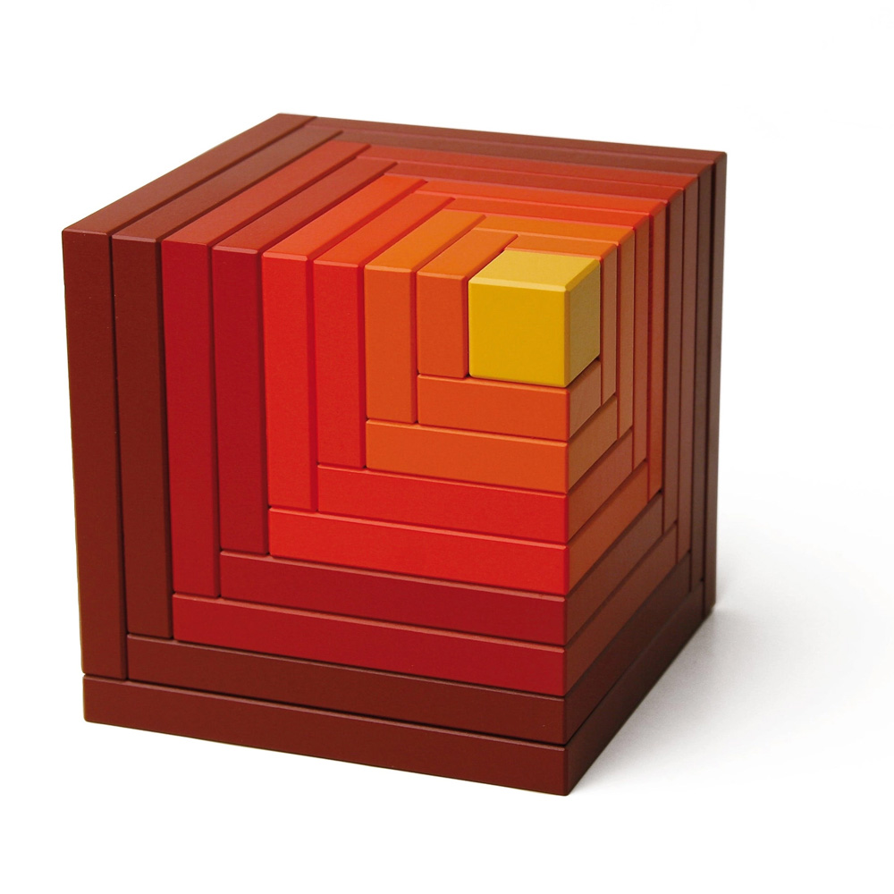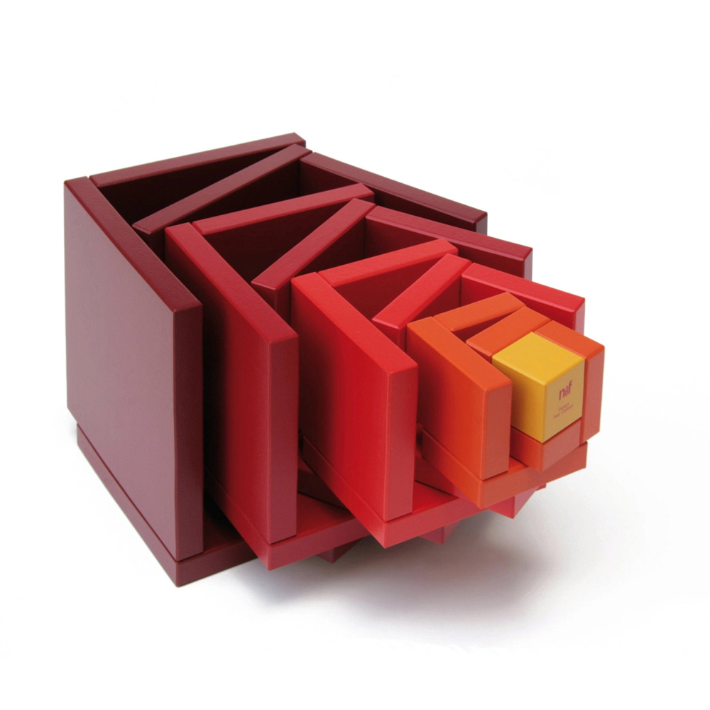 Build and Play - Hide and seek with Cella In the cube of the cube of the cube... The smallest unit within a cell, or the most sacred chamber of an ancient temple – Cella symbolizes this path. Nine half cube shells create a game of spatiality with almost endless possibilities. Furthermore, with its reduce design it is very decorative and fits perfectly on a sideboard too.