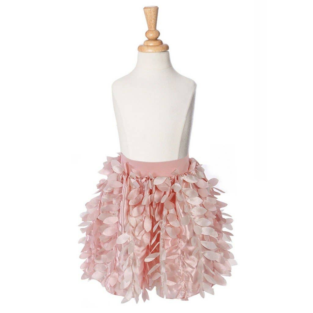 This very fun Petal Party Skirt in pink is embellished with rows of taffeta leaves that flutter with every move. Finished with comfy elastic waistband and fully lined with poly silk. Perfect for a fairy party or if she wants to dance all day long! Medium 5-7 (child)‚ 20in waist, 13in length. Care: hand wash or spot clean recommended.