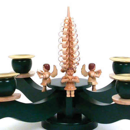 Green Advent Candelabrum with Seated Angels