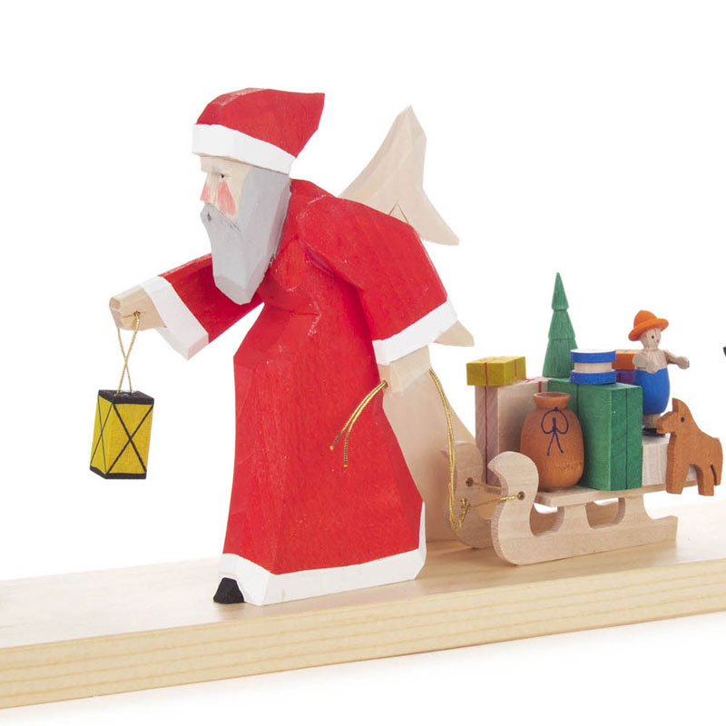 Experience the charm of Erzgebirge craftsmanship with this intricately carved wooden Santa accompanied by a deer. This piece beautifully captures the essence of traditional holiday decor, making it a perfect addition to your festive collection. The detailed carving highlights the skill and artistry involved, ensuring it stands out as a unique piece in any setting.