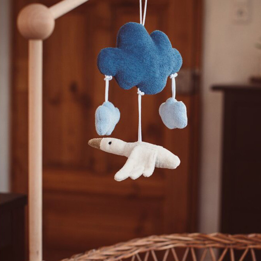 The enchanting Sunset Mobile in soft blue tones is a real eye-catcher in any nursery. Thanks to the practical loop, it can be easily attached anywhere. The clouds and goose can also be removed individually and clipped anywhere. The gentle movements of the mobile can help children to relax and fall asleep.