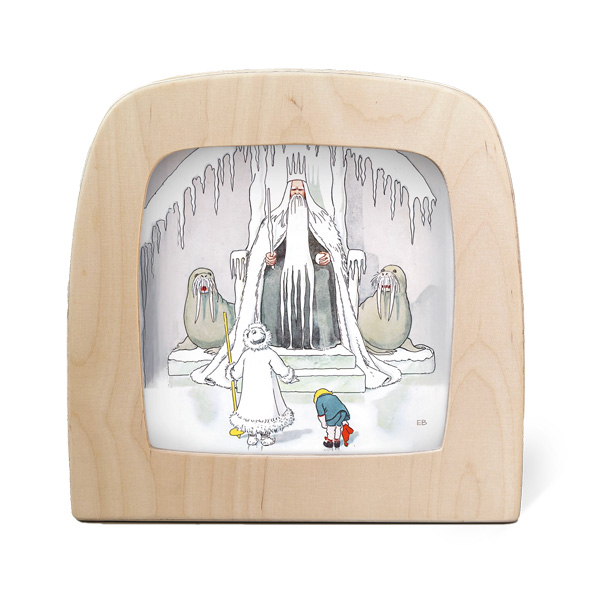 This is the Toverlux Silhouette from Elsa Beskow's storybook Ollie's Ski Trip, showing Ollie and Jack Frost meeting King Winter.