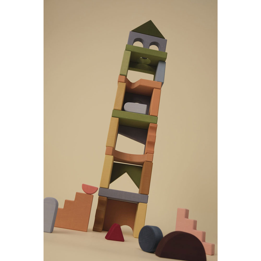 29 blocks for constructing. Neat shapes with cut-outs are well suited to architectural creations. A toy that develops design and spatial thinking. Build a skyscraper, a panel, an urban district with Blocks building blocks according to your plan!