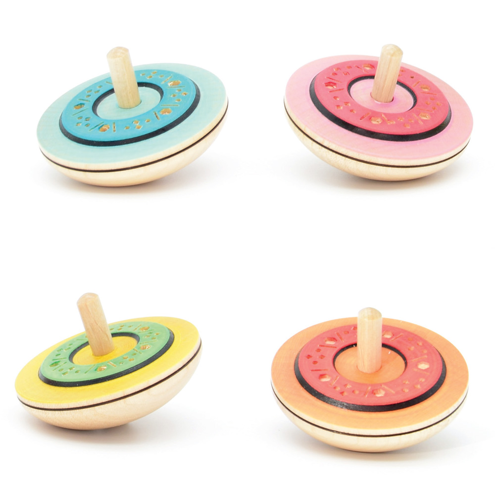 The idea: A new spinning top, featuring a new embossed design for this year, and with four colors that are never repeated. Each annual spinning top can only be ordered in its respective year. The 2026 model will be replaced by the 2027 model, creating a natural limitation. Four colorful “COCKTAIL” annual spinning tops with an ice-cube embossing on maple wood.