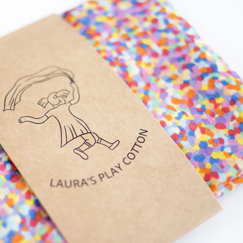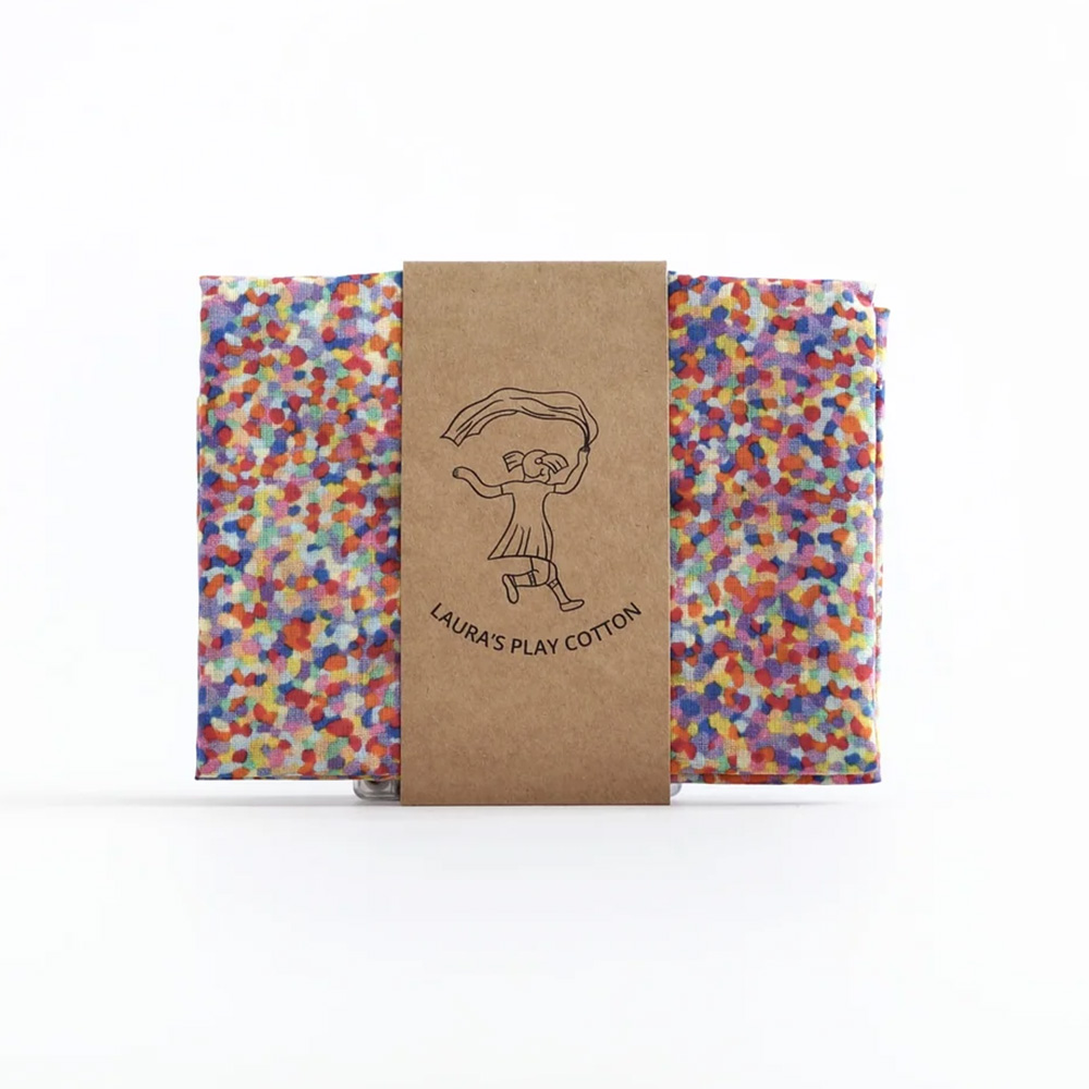 A play cloth for dress up and imaginative play by Laura's Play Cotton, with a super confetti design made to match the Stapelstein board of that name. The cloths are lovingly made from organic cotton and guarantee endless adventures. Laura's Play Cotton encourages open-ended play, where children are free to explore, create and learn. The collection of play cloths and accessories are designed to stimulate the imagination and inspire children to enjoy hours of fun.