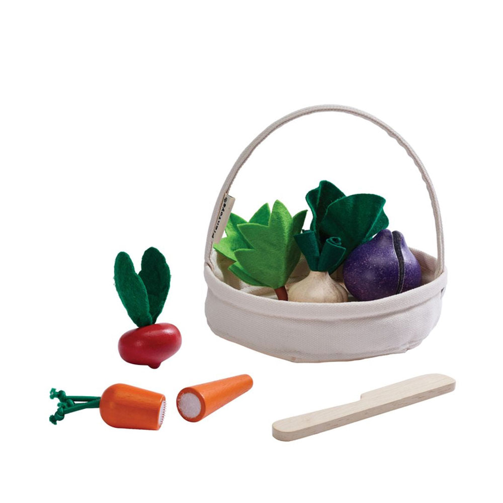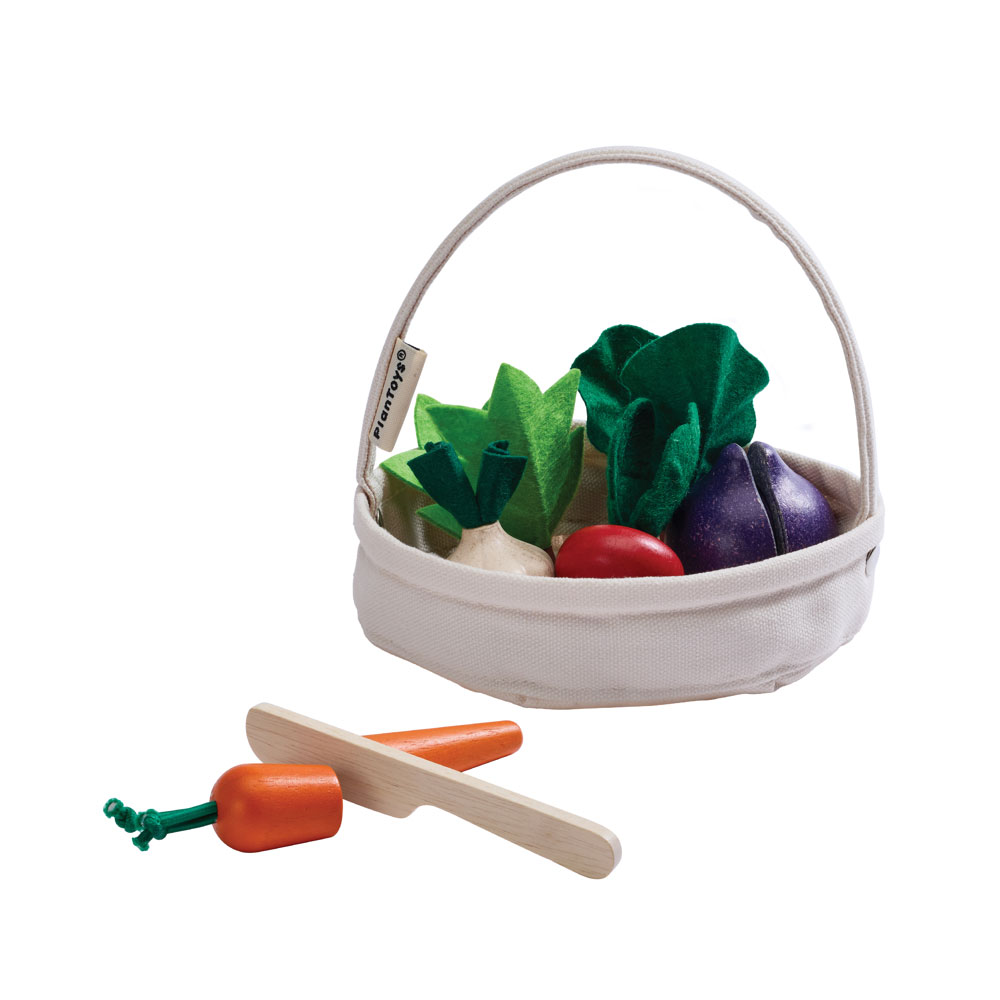 A basket of freshness and fun for little chefs. Children cut, sort, and serve colorful wooden vegetables—imagining farm harvests, kitchen prep, or market play. Every slice strengthens fine motor coordination, creativity, and storytelling skills while encouraging language, sharing, and confidence through pretend play. The set includes 7 pieces in total, featuring 1 fabric basket, 1 sliceable carrot, 1 sliceable shallot, 2 leafy greens, 1 garlic bulb, 1 radish, and 1 wooden knife.